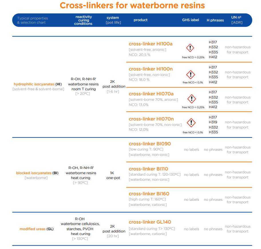 CROSS-LINKERS & CURING AGENTS FOR WATERBORNE RESINS